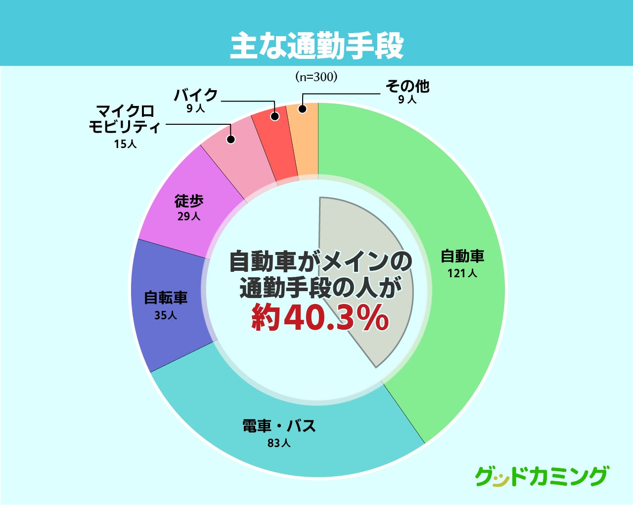 「電車・バス」約27.7%(83人)と、公共交通機関を活用する層も根強く存在します。