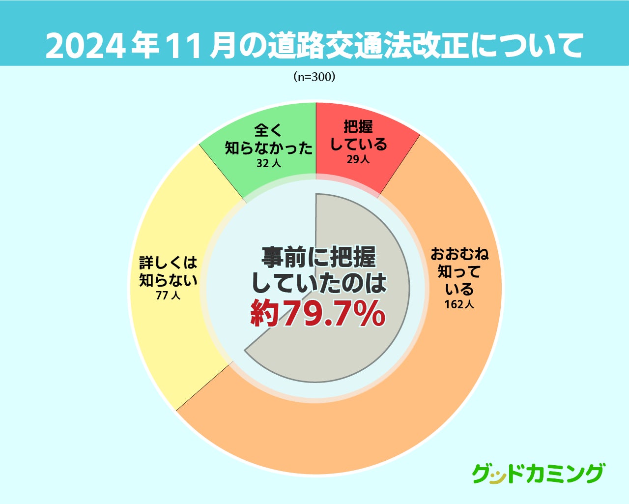 2024年11月の道路交通法改正に関する認知度は約79.7%