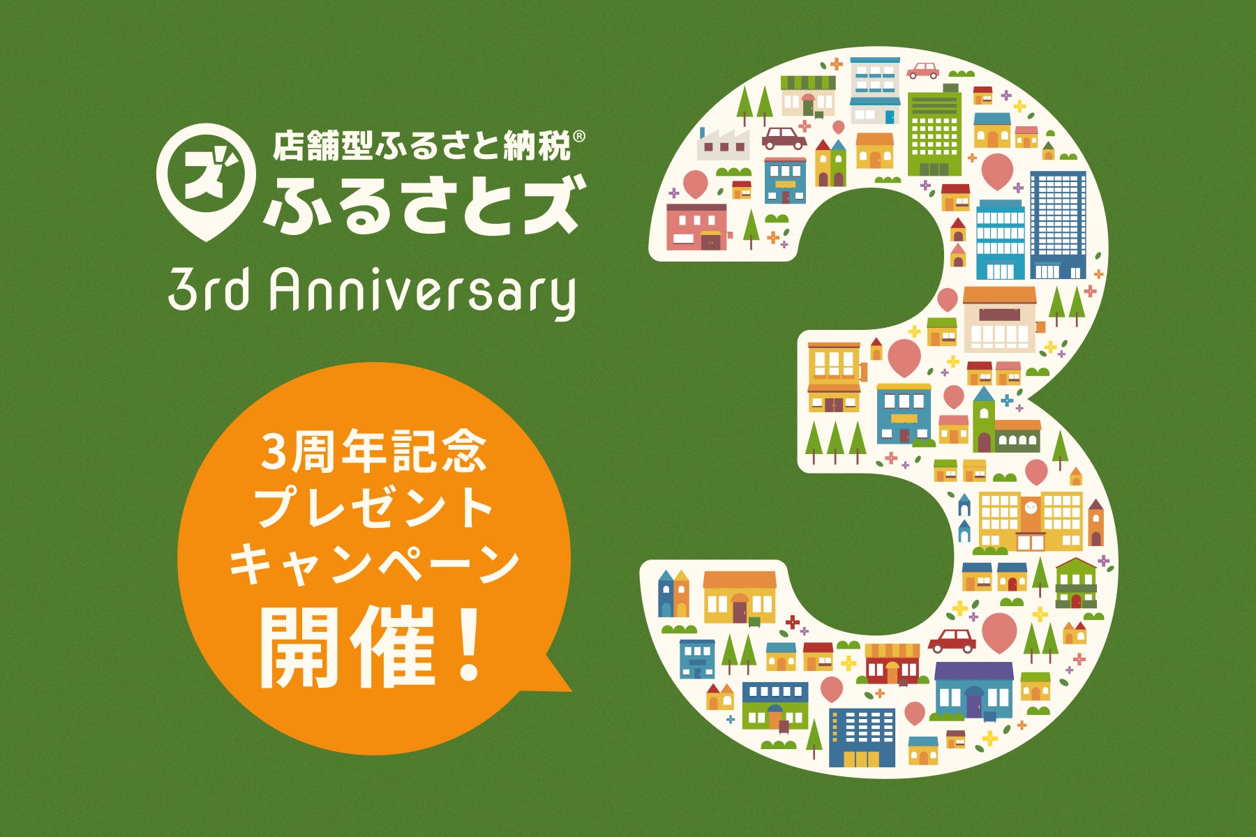 2024年11月1日、店舗型ふるさと納税(R)『ふるさとズ』はサービスリリース3周年を迎えます。当サービスをご利用の皆さまに感謝の意をこめて、記念キャンペーンを本日より開催いたします。