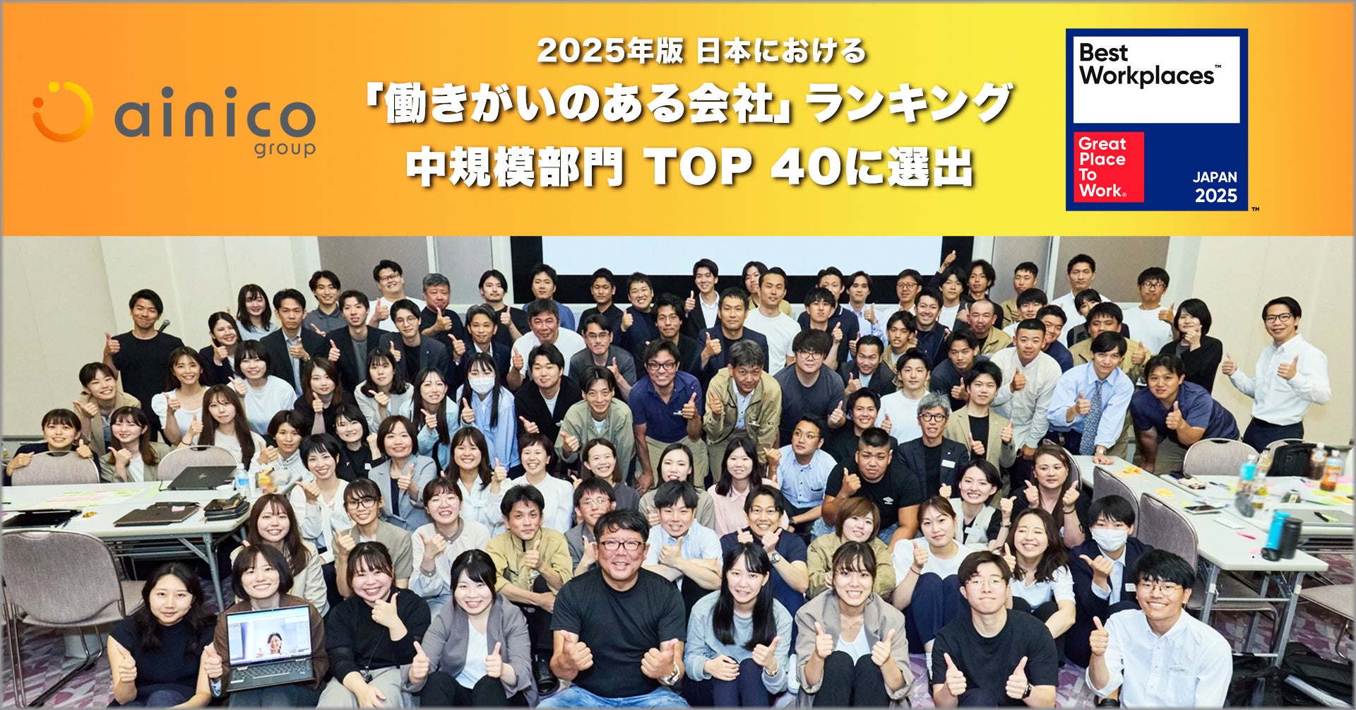 アイニコグループ、2025年版「働きがいのある会社」ランキングベスト100の中規模部門TOP40に選出。「働きがいのある会社」認定企業としては7年連続