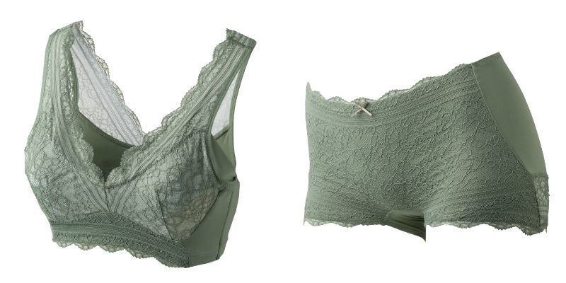 シリーズ累計100万個を突破!「小胸さんを理想に導くナイトブラ」のバストケアブランド「LUNA(ルーナ)ナチュラルアップナイトブラ・ショーツ」から新カラー「ダスティグリーン」が登場