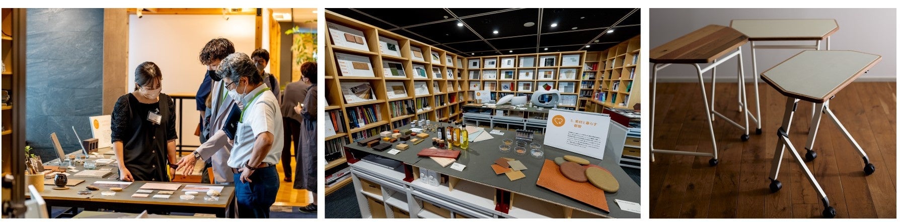 2021年には東京本社のオープンスペースにエシカルマテリアルのギャラリーを公開、2023年3月には関西支店にも開設しました。業界を越えた出会いが生まれ、エシカルデザインの風土醸成に寄与する場となりました。