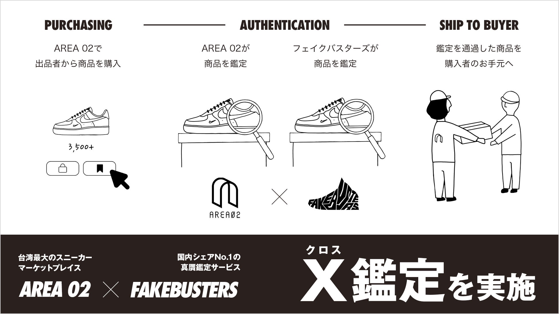 国内シェアNo.1の真贋鑑定サービス「フェイクバスターズ」が、台湾最大級のスニーカーマーケットプレイス「AREA 02」と業務提携!