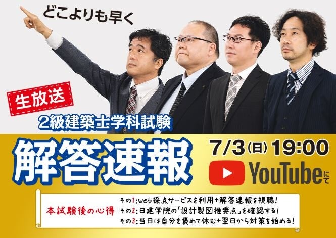 【2022(令和4)年度2級建築士 学科試験】試験当日(7/3) 19:00~YouTubeにて「解答速報」無料LIVE配信!