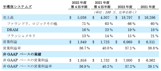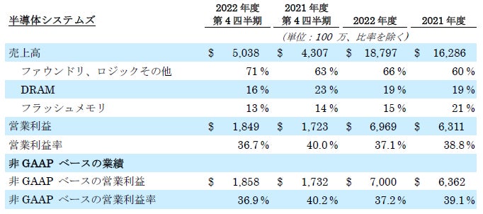 社長兼CEOのゲイリー・ディッカーソンは次のように述べています。「当社は今年度を堅調に締めくくる過去最高の業績を達成しました。引き続きサプライチェーンひっ迫の緩和に注力するとともに、お客さまの需要に応えるべくあらゆる可能な手段を講じています。地政学的およびマクロ経済上の情勢を受けて、短期的には支出の伸び率を抑えるものの、戦略的な投資を継続し、主要なテクノロジーの転換をとらえて半導体市場平均を上回る成長を目指します」