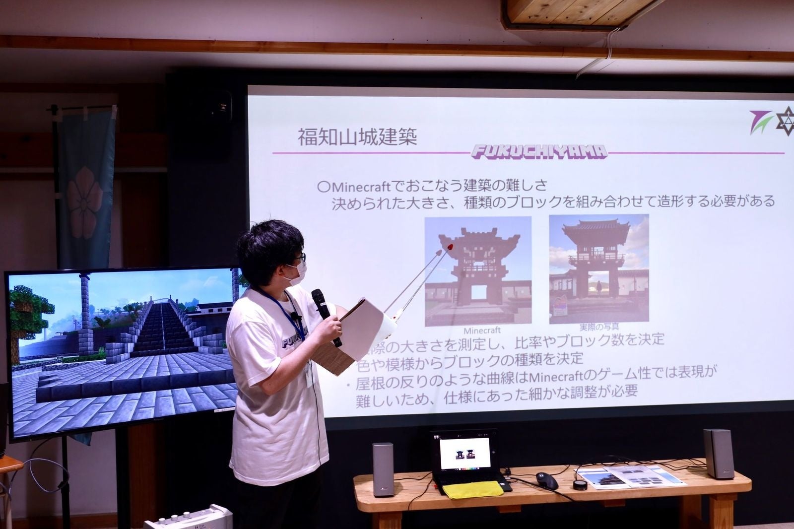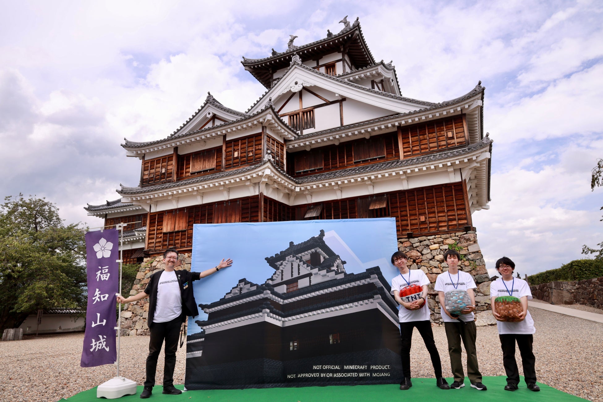 福知山公立大学の情報学部生が人気ゲーム「マインクラフト」内に福知山城を再現し、お城にてお披露目!監修のプロマインクラフター・タツナミシュウイチさんも登場!