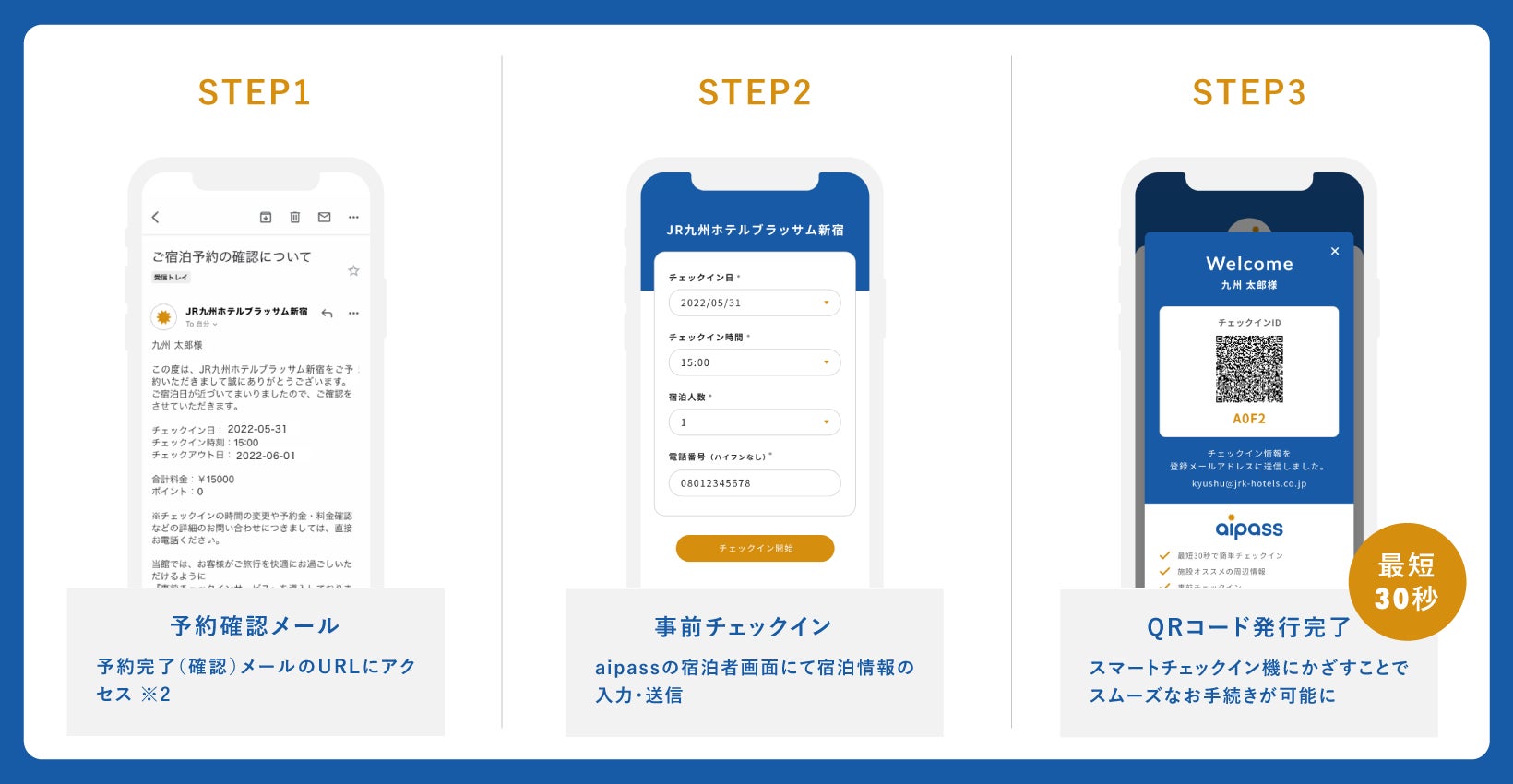 宿泊体験をより良いものとすべく多数サービスを検討する中で、自動チェックイン機との親和性も良く、今まで自動チェックイン機に直接入力していた住所・氏名などの情報を、普段から使い慣れた旅行者のスマートフォンから取得することで、入力時間を大幅に削減できるほか、共用画面への接触機会も減らすことで、コロナ禍でも安心・安全な体験を提供可能な『aipass』の導入を決定いたしました。