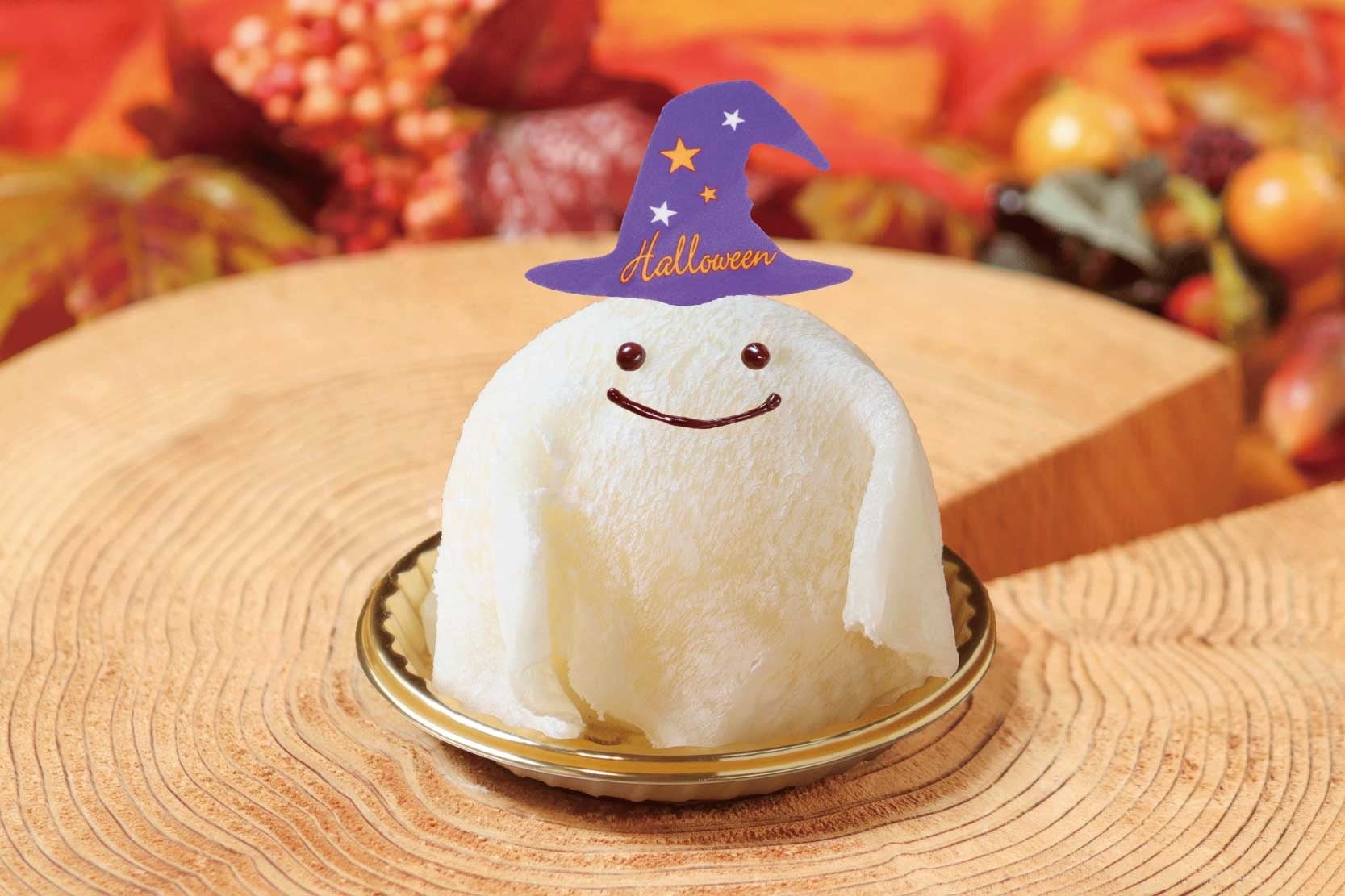 ニッコリ笑顔が可愛い「おばけのケーキ」は、ふんわりとした生地の上にフルーツとバニラムースをのせ、柔らかな求肥で包みました。 ¥573(税込)