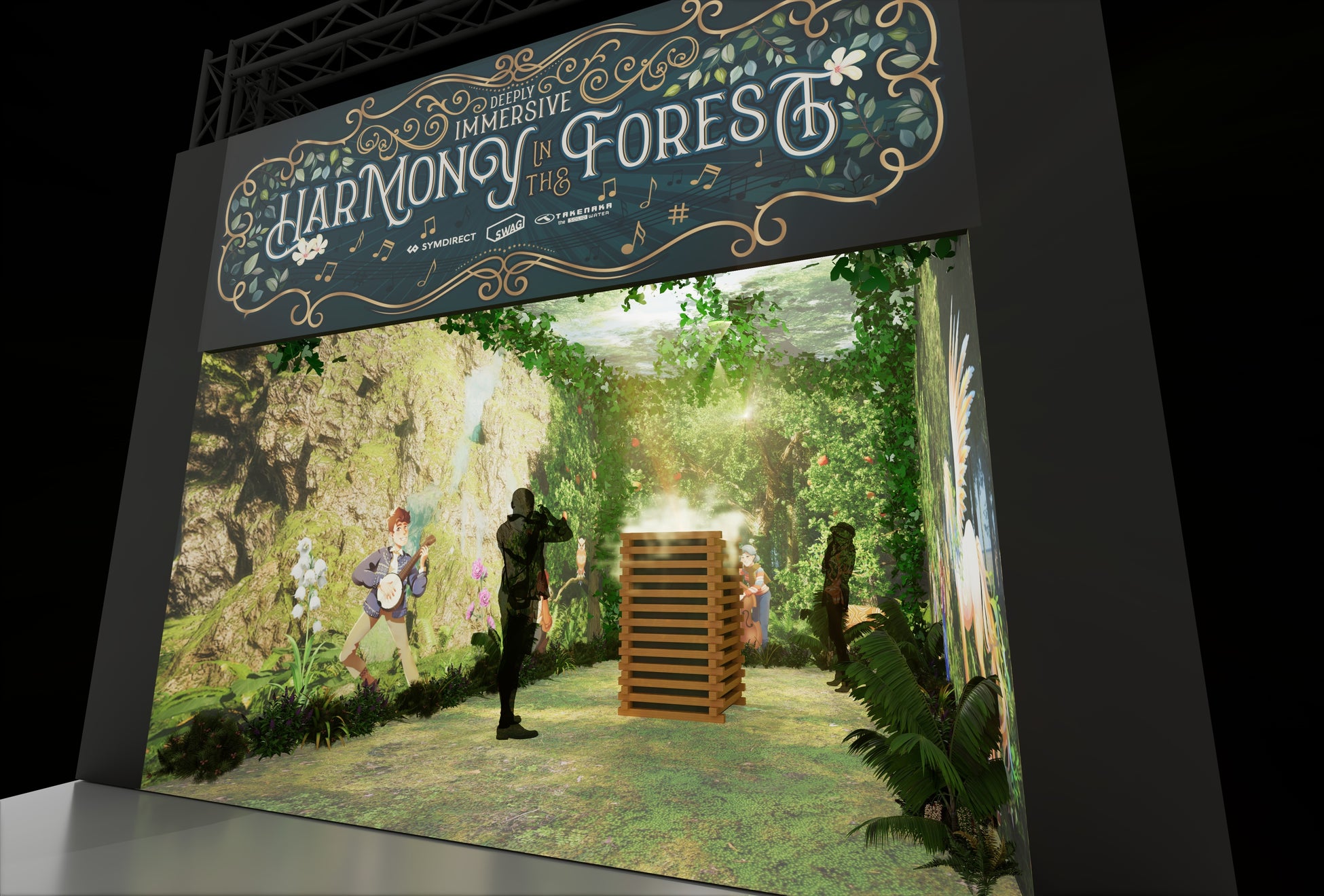 森の中で開かれる音楽会の世界の中で、森林の映像や楽器の演奏、鳥の羽ばたきや花の香りなど、様々な要素が調和(Harmony)したイマーシブな空間をぜひ、ご体験ください。