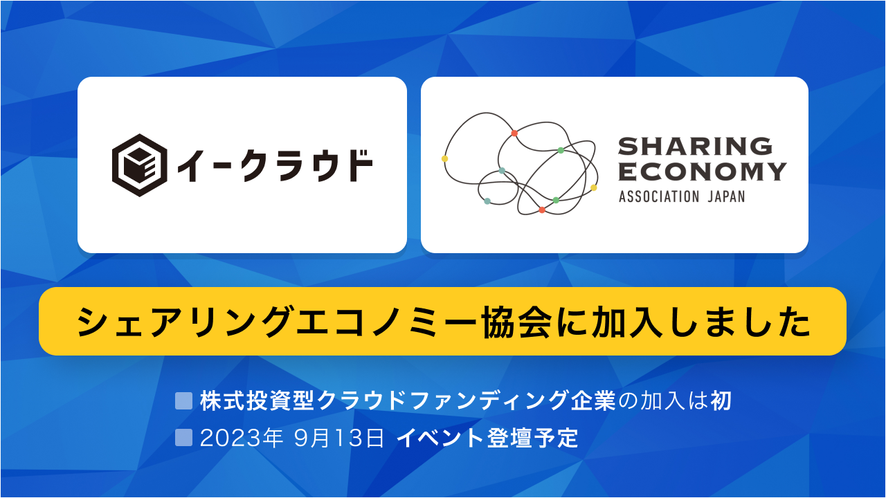 株式投資型クラウドファンディング「イークラウド」、シェアリングエコノミー協会に入会