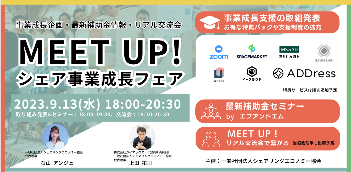 9月13日(水)にはシェアリングエコノミー協会主催イベント「シェアエコMEETUP vol.16」に参加・登壇予定です。