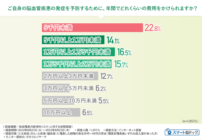 - 【脳血管疾患の予防にかけられる費用は少ない】年間2万円未満と回答した方が約7割