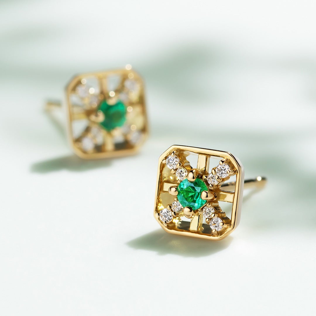 ピアス「エメラルド×ダイヤモンド K18ピアス(片耳)・ジャルダン」(税込77,000円)は、ミニマムながら贅沢に使った「ダイヤモンド」が華やかなアイテムです。ほどよい抜け感もアクセントになり、横顔を印象的に魅せます。