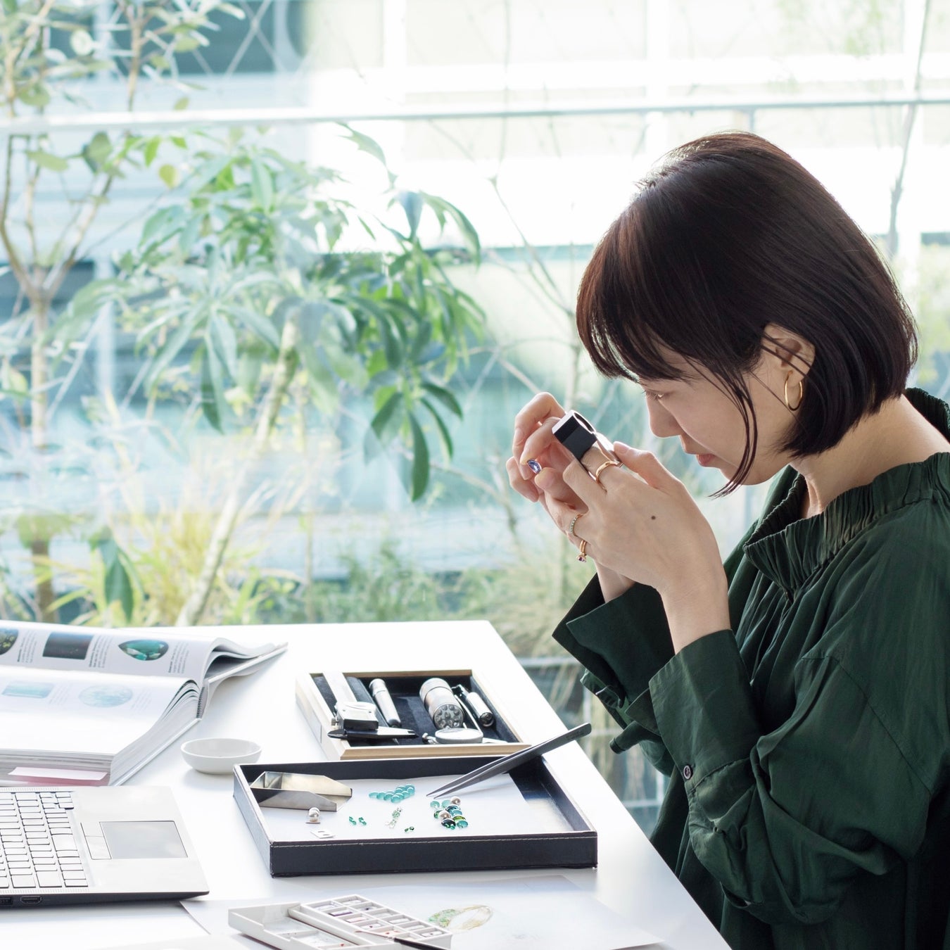 独自ルートを強みに、国内では「ビズー」でしかほぼ取り扱いのない、入手困難な宝石も揃います。ブランドを立ち上げた14年前(2009年11月)当時から、当社のバイヤーがアメリカやタイ、香港、インドなど世界中へ足を運び、ルース(裸石)を一点ずつ丹念にチェックし、キズがなく、美しく発色する透明感のある高品質なものを見極めて買い付けを行なっています。世界三大希少石の「パライバトルマリン」や、思わず見とれるほどの濃く鮮烈な色彩を持つ「ベキリーブル―ガーネット」、輝きと色合いが一つずつ異なる“一点モノ”を数多く取り扱うことができるのは、品質を見極める眼と買い付けのノウハウを持つ「ビズー」ならではです。