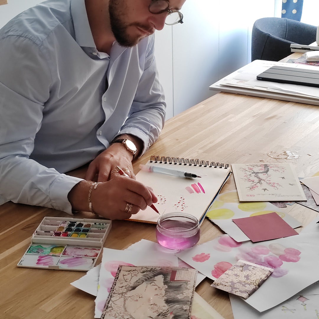 モチーフにするのは、日本のシンボルである「桜」と、パリジェンヌに愛される「庭園」です。デザインは、フランス式庭園はビズーのデザイナー、小川翠(おがわ・みどり)が、桜はパリのジュエリーブランド「Studio28(スタジオ ヴァンテュイット)」のデザイナー、ピエール・コーエン・ソラール(Pierre Cohen-Solal)が手掛けます。言葉や文化の違いを越えて生み出したデザインを、ジュエリー職人が手作業で一つ一つ形にします。