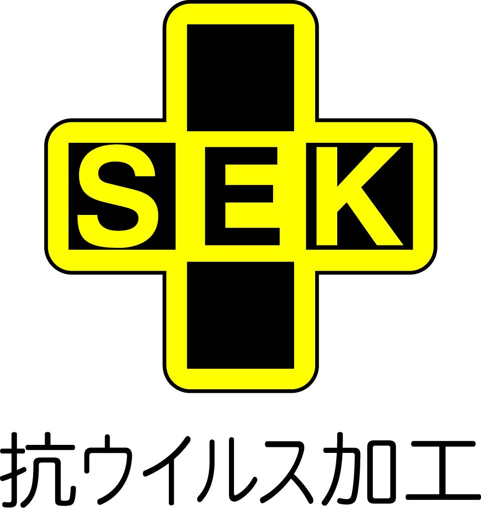 SEKマークとは⼀般社団法⼈繊維評価技術協議会が、繊維製品の機能性、耐久性、安全性を認証するマークです。SEKマークの定義は「S:清潔」「E:衛⽣」「K:快適」を⽰します。SEK抗ウイルス加⼯表⽰品は、⽣地に付着した特定のウイルスの数を減少させる抗ウイルス加⼯を施しています。