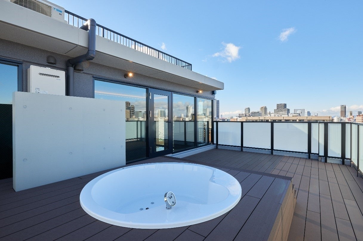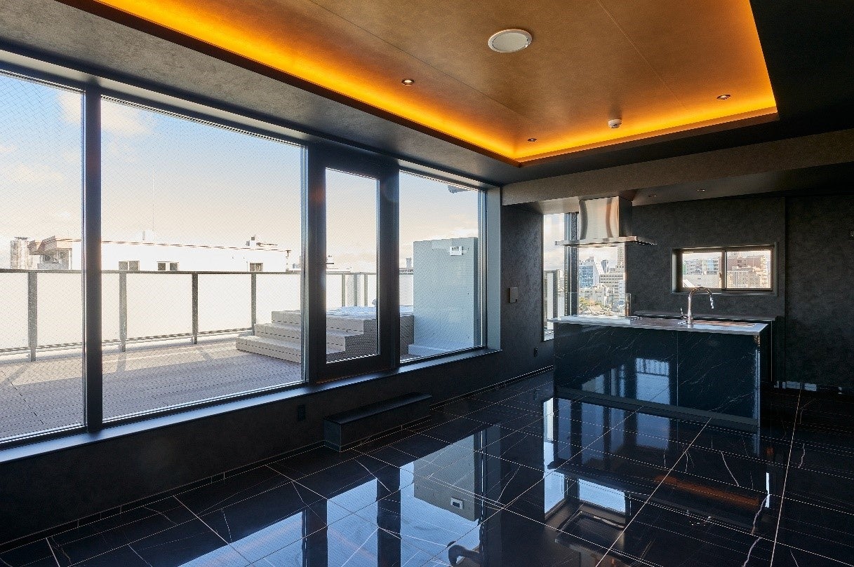 15階の最上階は、100平方メートルほどの広いワンフロアとし、「ラグジュアリー」をコンセプトとしたお部屋をご用意しました。ルーフバルコニーにジャグジーを設け、例えばホームパーティーなど、訪れた方々に満足していただきたいという思いを込めました。
