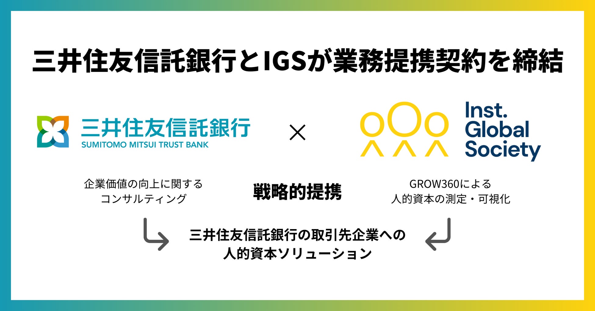 IGSが三井住友信託銀行と業務提携契約を締結。人的資本の測定・開示に向けたソリューションとしてGROW360を展開