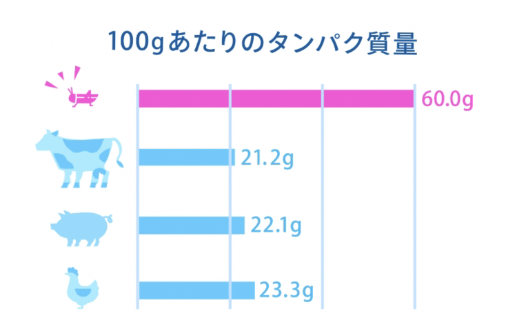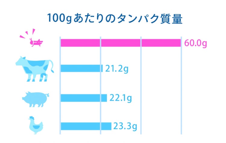 - 既存家畜に比べて高い栄養価を持つコオロギ