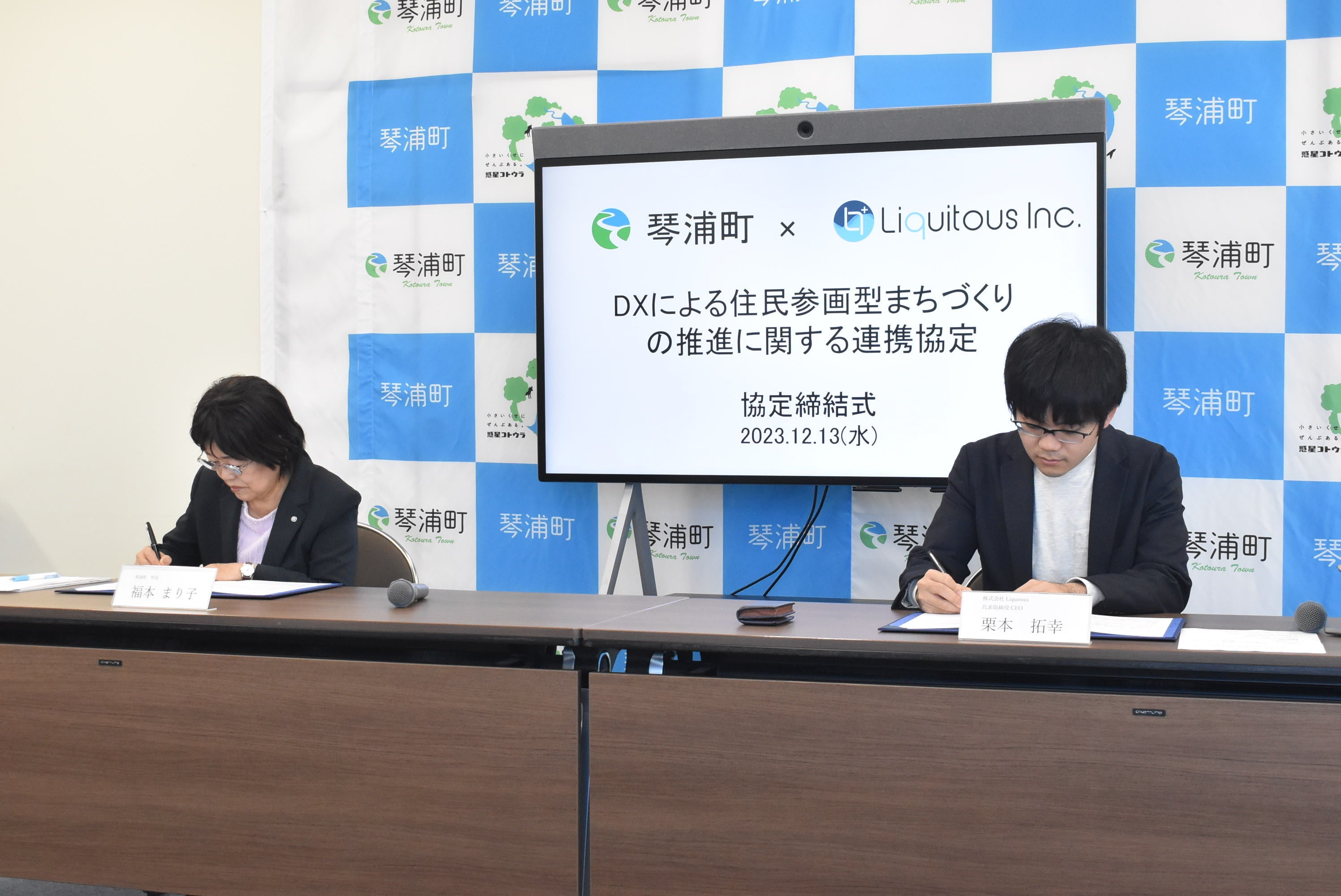 株式会社Liquitous(本社:神奈川県横浜市、代表取締役CEO:栗本 拓幸)は、鳥取県琴浦町(町長:福本 まり子)と「DXによる住民参画型まちづくりの推進に関する連携協定」を締結しました。