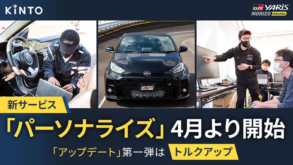 株式会社KINTO(以下、KINTO)は、トヨタ自動車株式会社(以下、トヨタ)とともに、GRヤリス“モリゾウセレクション”を契約いただいたお客様を対象に、クルマを運転する際のデータをもとにソフトウェアを一人ひとりに合わせて最適化していく新たなサービス「パーソナライズ」の提供を2022年4月より開始します。