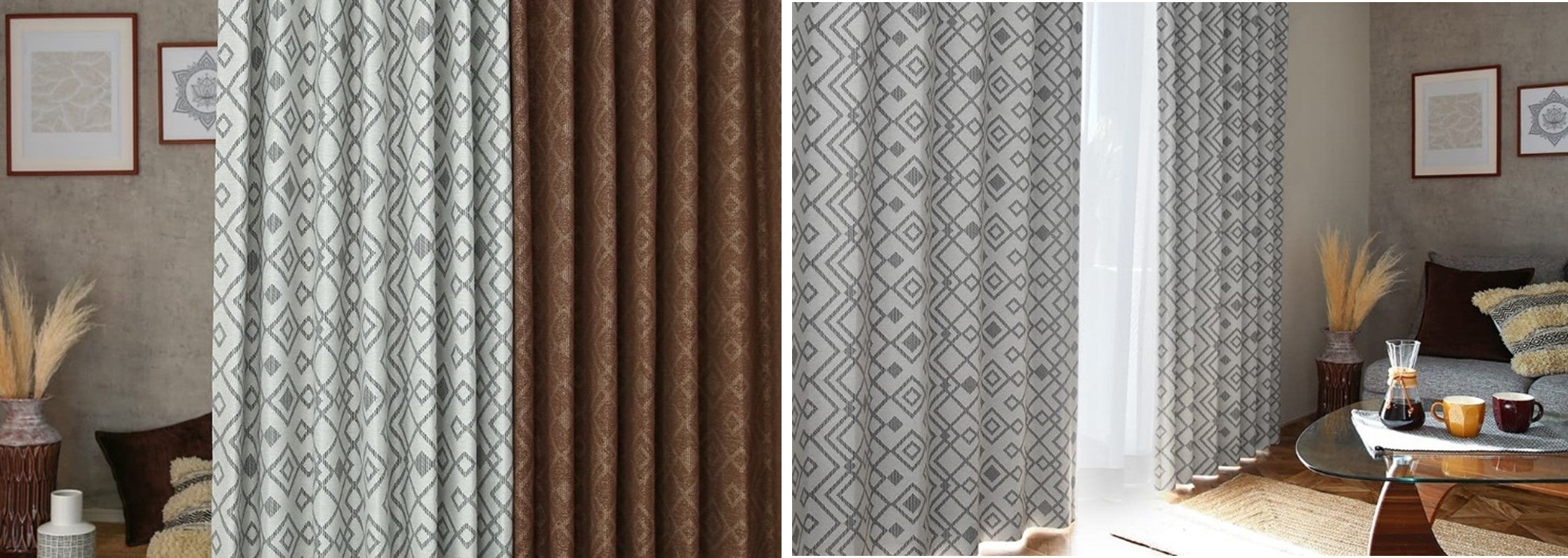 “ハイセンス”そんな言葉が似あう、デザイン性の高いカーテンです!都会的でモダンな雰囲気もありつつ、リゾート空間にいるような気分にもしてくれる、とっても優秀な一枚。