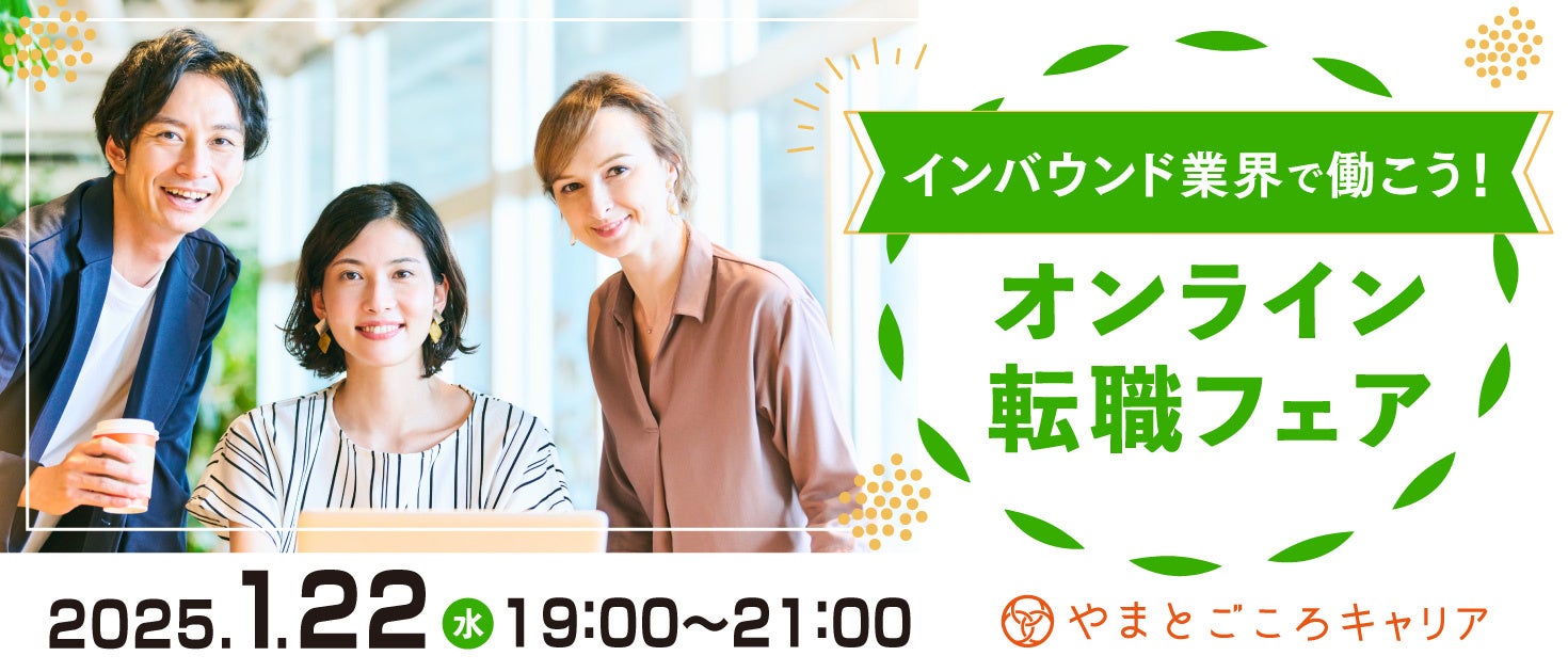 インバウンド専門の求人サイト「やまとごころキャリア」を運営する、株式会社やまとごころキャリア(本社:東京都江東区、代表取締役社長:松島 敏幸)は、2025年1月22日(水)に「インバウンド業界で働こう!オンライン転職フェア」を開催いたします。