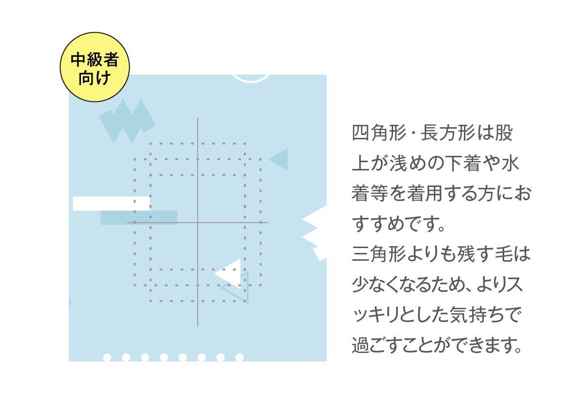 三角形よりも残す毛は少なくなるため、よりスッキリとした気持ちで過ごすことができます。