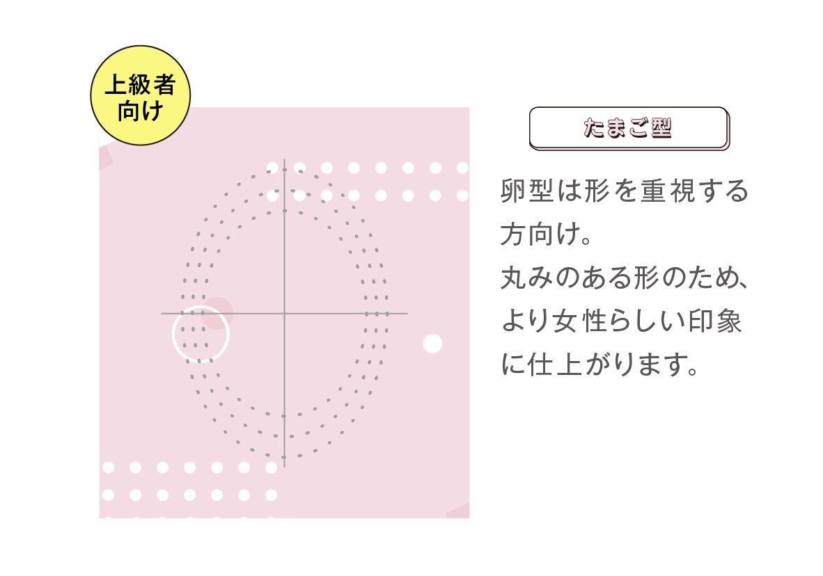 卵型は形を重視する方向け。丸みのある形のため、より女性らしい印象に仕上がります。
