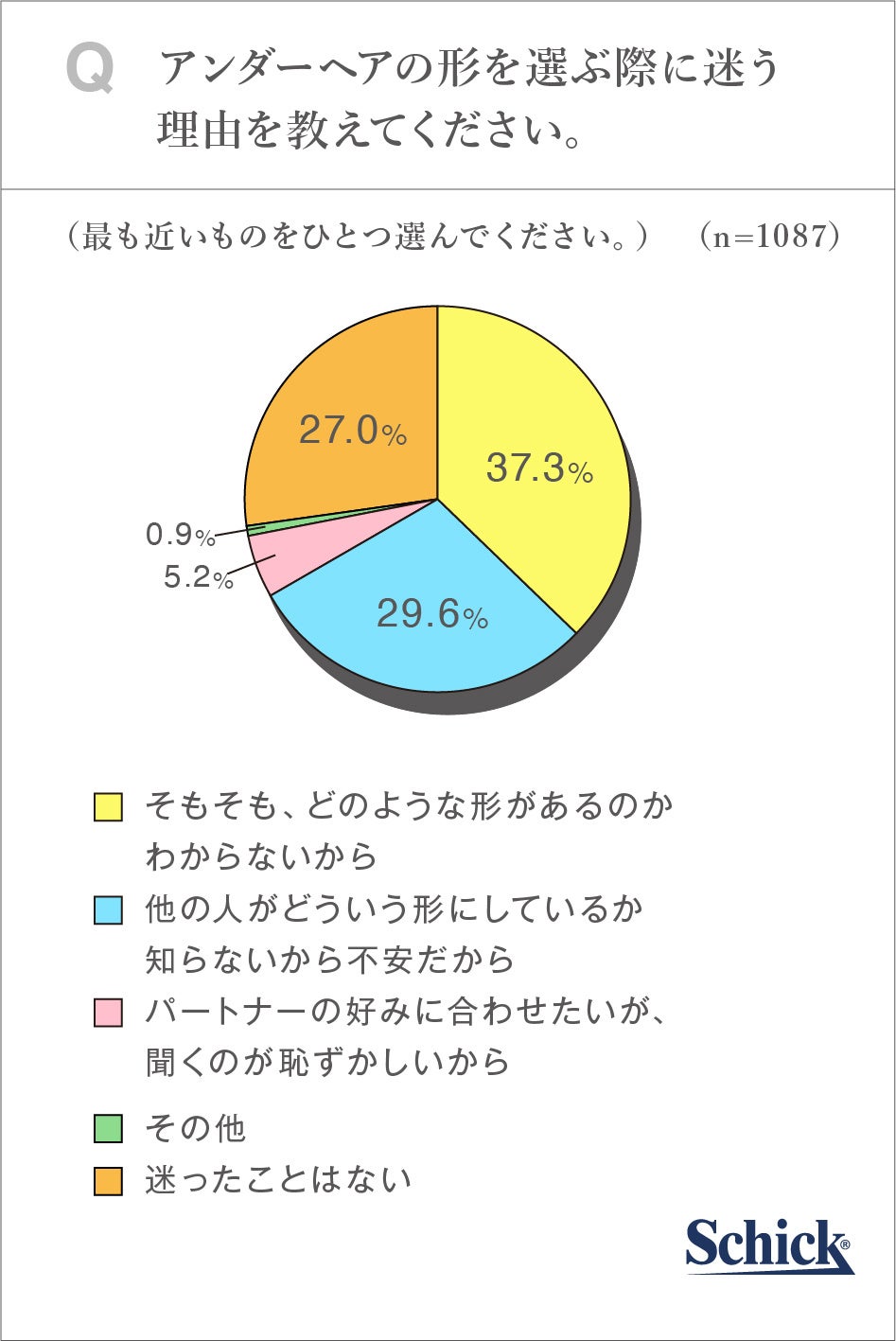 「アンダーヘアの形を選ぶ際に迷う理由」についても尋ねたところ、「そもそも、どのような形があるのかわからないから」と回答した女性は37.3%と最も多い結果となりました。