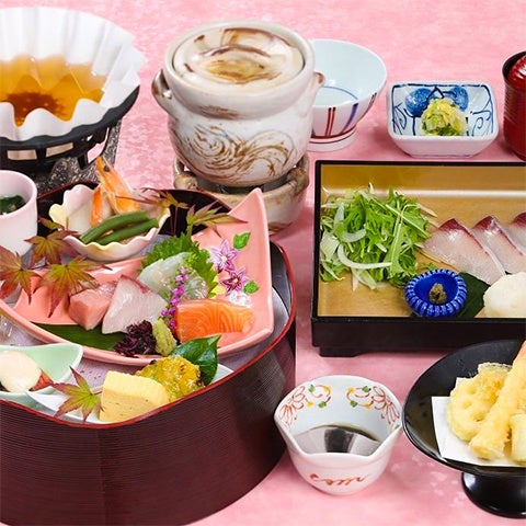 ◆前菜盆(前菜・造り) ◆中千代口 ◆魚しゃぶ小鍋 ◆天ぷら ◆トマトチーズ焼 ◆季節の茶碗蒸し ◆季節釜飯 ◆汁物