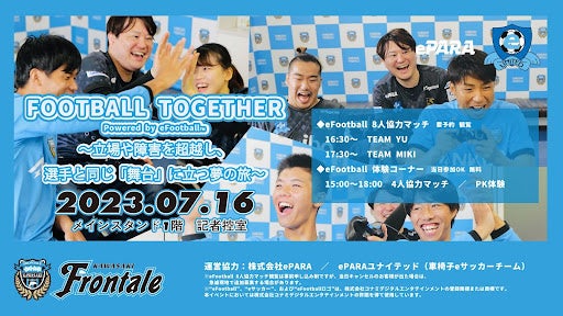 2023年7月 川崎フロンターレ・2023ファン感謝デー特別企画「FOOTBALL TOGETHER Powered by eFootball™️」を制作・出演。佐々木旭選手や早坂勇希選手と、コーチ・サポーター・ePARAユナイテッドメンバーがサッカーゲーム内で共闘しました。