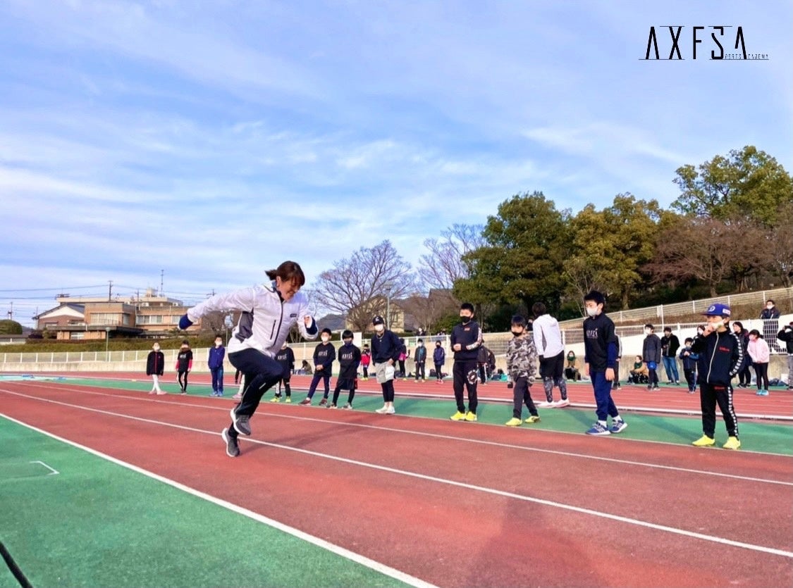 北京五輪日本代表選手を務めた、青木沙弥佳の現役時代からの豊富な知識と経験、そして現役時代より愛用していたスポーツブランド、AXF axisfirm(アクセフ)のハイパフォーマンスを引き出す特性を活かし、未来ある子供たちに陸上競技の指導を行いました。