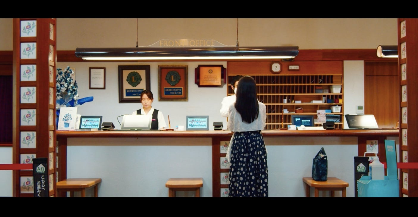 岡山デニムが制作される工程を映し出す映像だけではなく、物語を盛り込んだ背景にし、