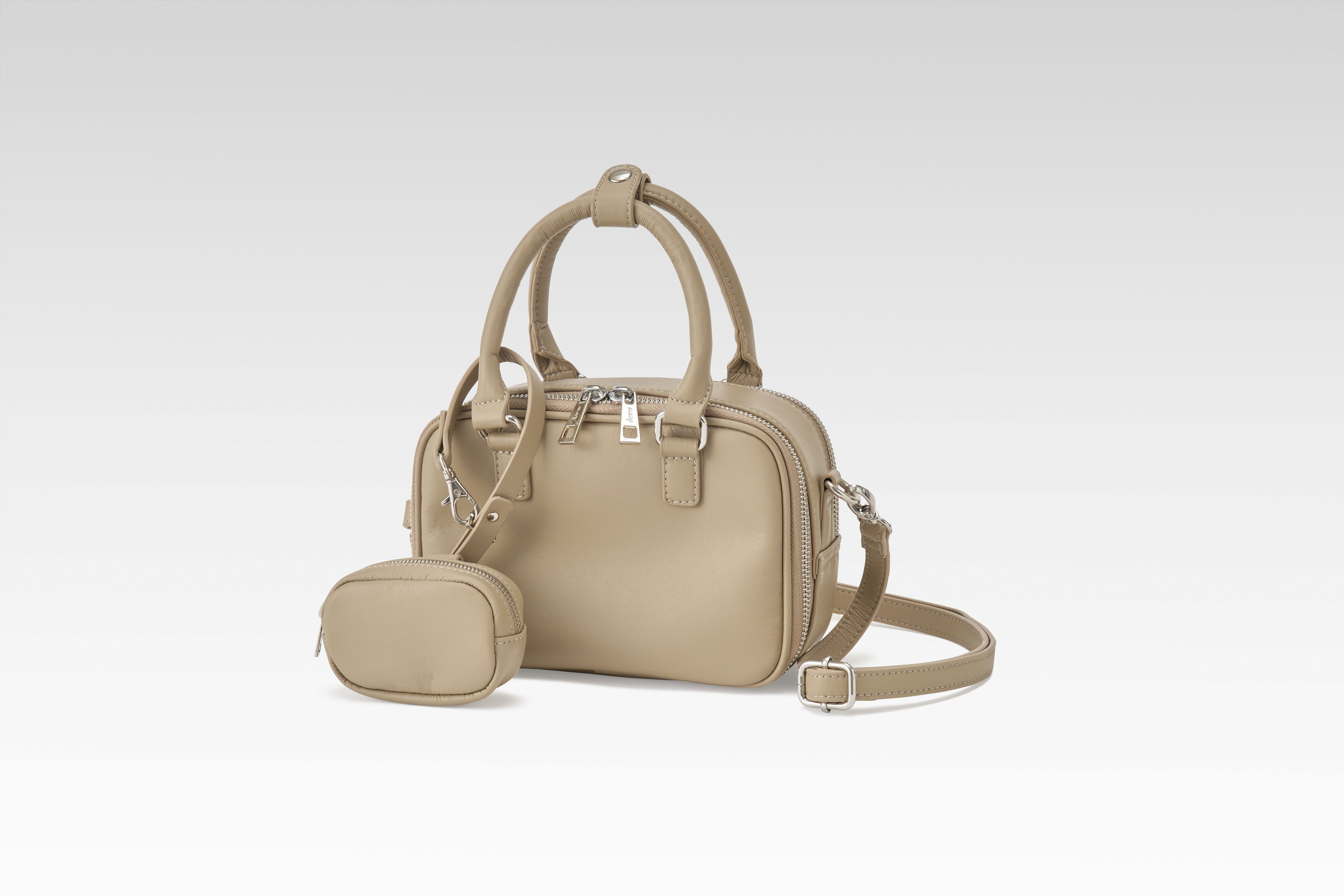ころんとしたフォルムが印象的なショルダーミニバッグも、バンブーレザーをまとい、より洗練された印象にアップデート。