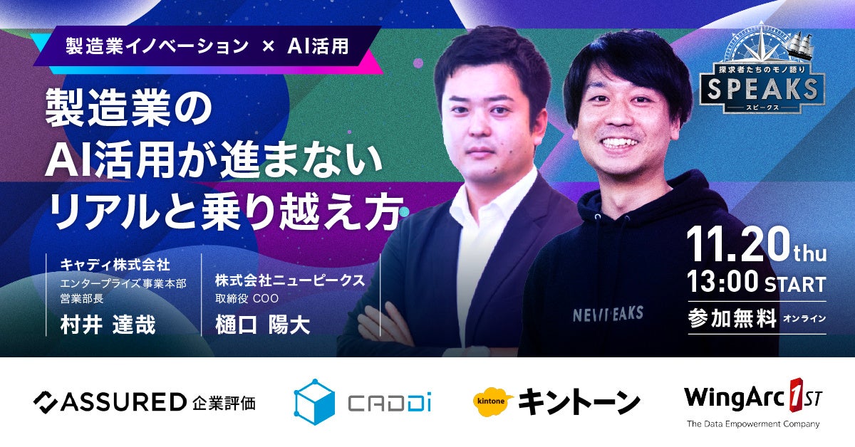 株式会社ニューピークス(NEWPEAKS.inc)は、「SPEAKS ‐ 製造業リーダーズサミット ‐ 」を2025年11月20日(木)にオンラインで開催します。