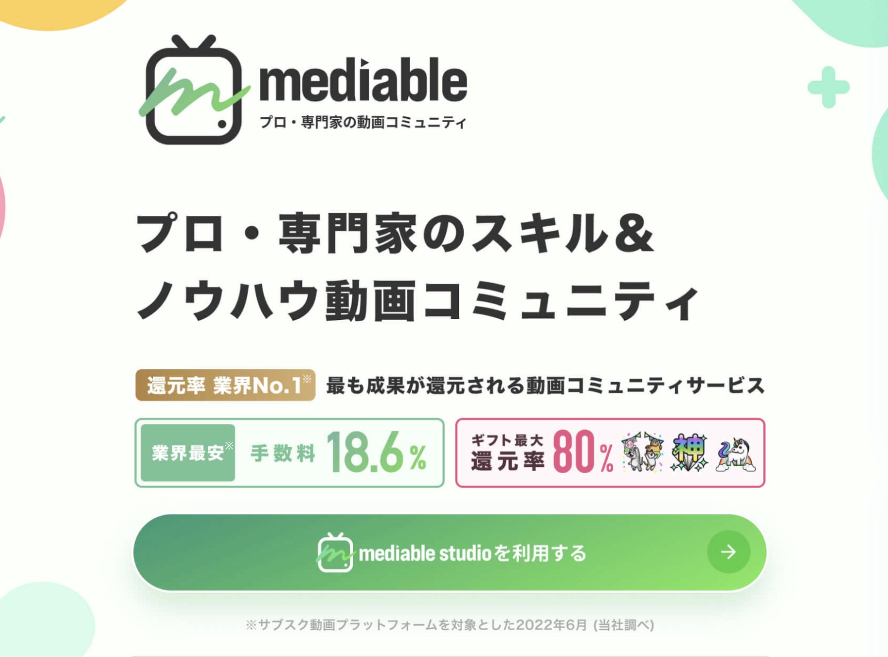 『mediable(メディアブル)』でスキル&ノウハウを共有する動画コミュニティをはじめるかたはこちらから:https://mediable.jp/openStudio