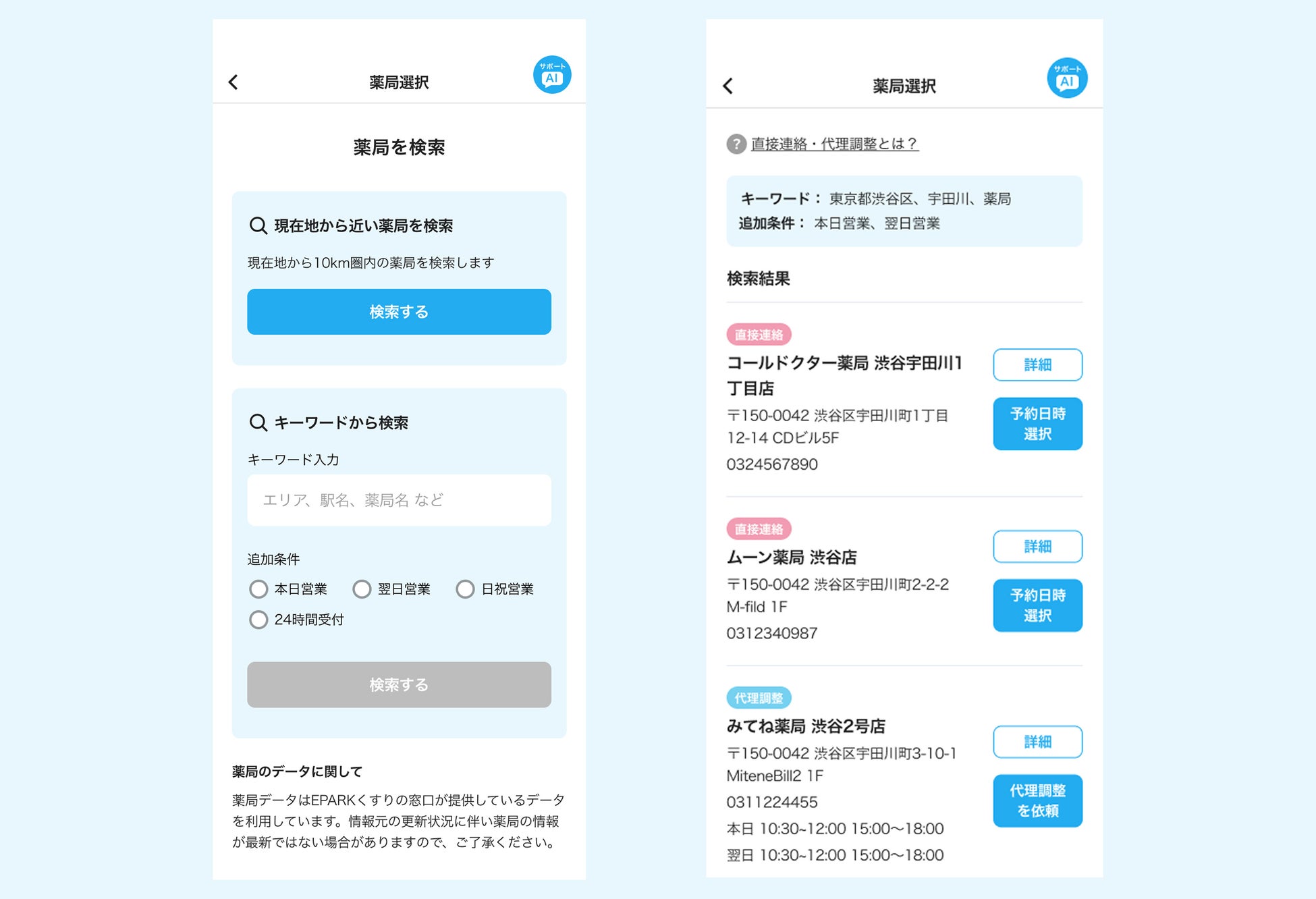 最新かつ正確な薬局情報のもとでのスムーズな薬局検索