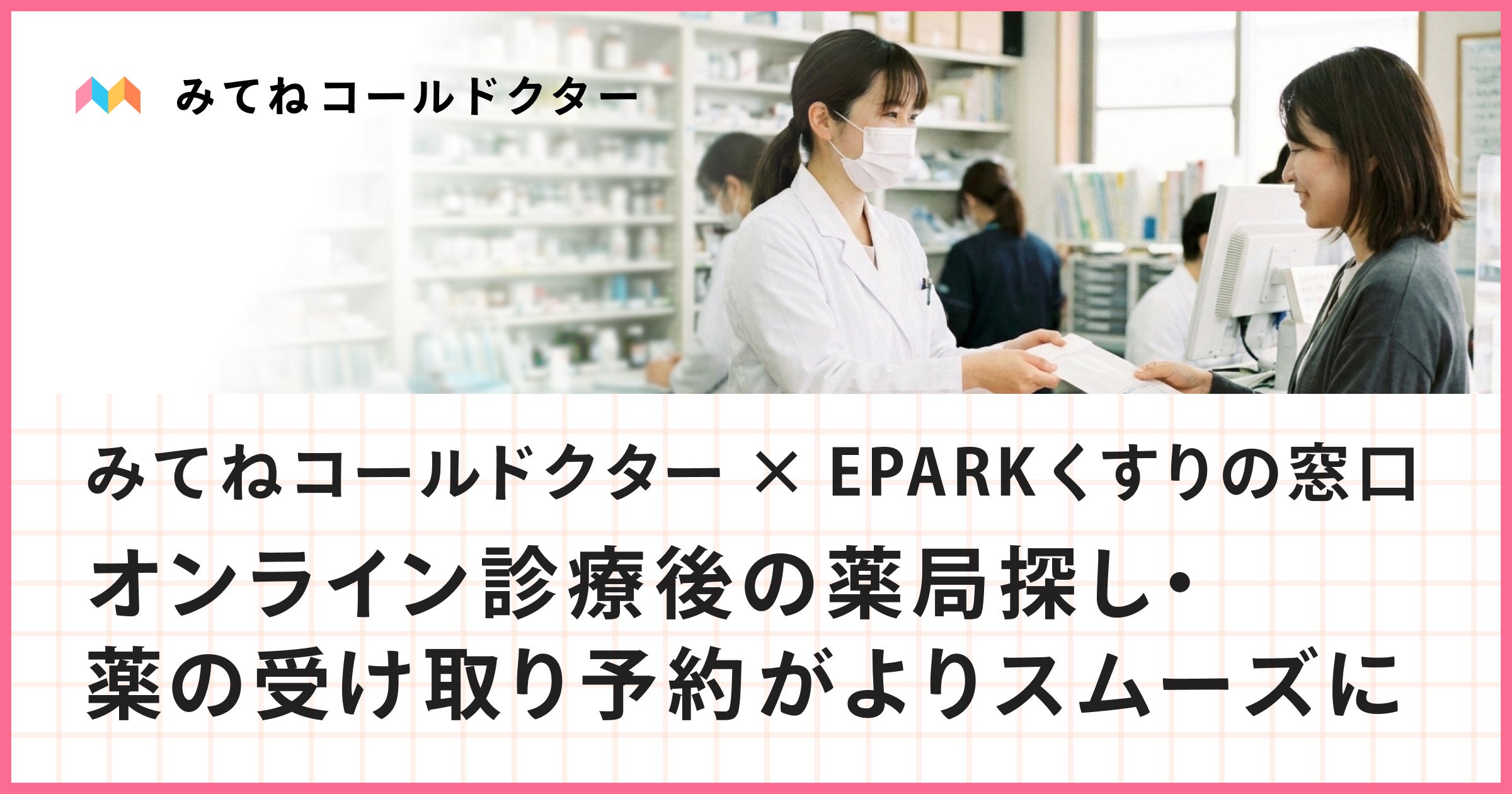 株式会社コールドクター(本社:東京都渋谷区、代表取締役:合田 武広)と株式会社くすりの窓口(本社:東京都豊島区、代表取締役:堤 幸治)は、オンライン診療後の薬局利用体験の向上を目的に、「みてねコールドクター」と「EPARKくすりの窓口」のサービス連携を開始したことをお知らせいたします。