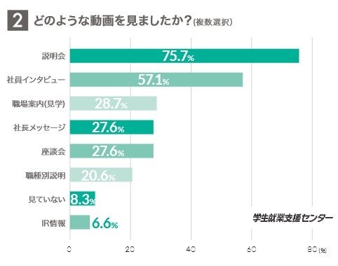 設問2では就職活動の中で視聴した動画の種類について複数選択で聞きました。