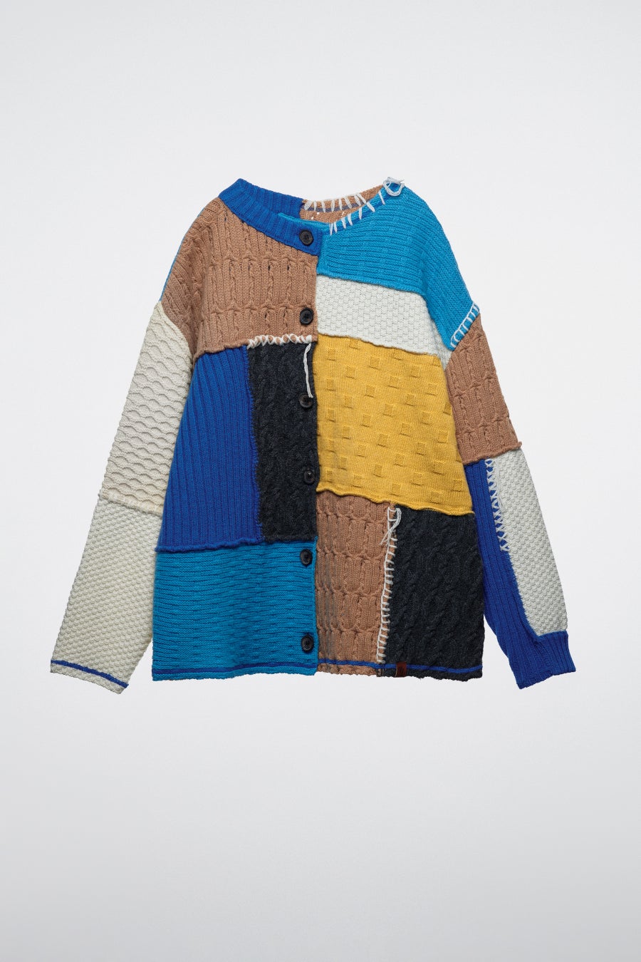 デニムは、パッチワークと裾プリーツの2種類を展開。ポロシャツ、ブルーのオーバーサイズボタンダウンシャツ、パッチワークジャンパー、ブラックボンバージャケット、そしてノーカラー、チェッカーボードがモチーフの2タイプのアップデートされたパフジャケットがコレクションのキーアイテムです。