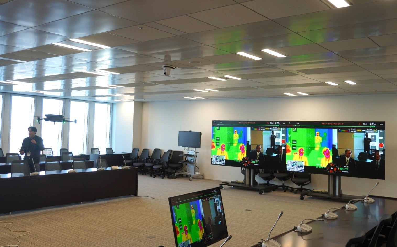 締結式では横浜市危機管理監の髙坂哲也氏はじめ危機管理室の職員が参加され、ドローンによる災害時の支援内容について活発な意見交換が行われました。