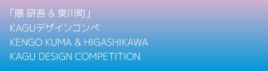 『「隈研吾&東川町」KAGUデザインコンペ』は、建築家 隈研吾氏と東川町が連携し、KAGUのある豊かな(丁寧な)暮らしを育み、建築と家具が育む新たなライフスタイルの発信を目指しております。「KAGU」を、人間と世界の間をつなぐものの総称で、従来の家具という概念を拡張したものと定義し、①未来に羽ばたく若者を育む、②豊かな(丁寧な)暮らしを育む、③地域を育む の3つの視点のもと実施しています。