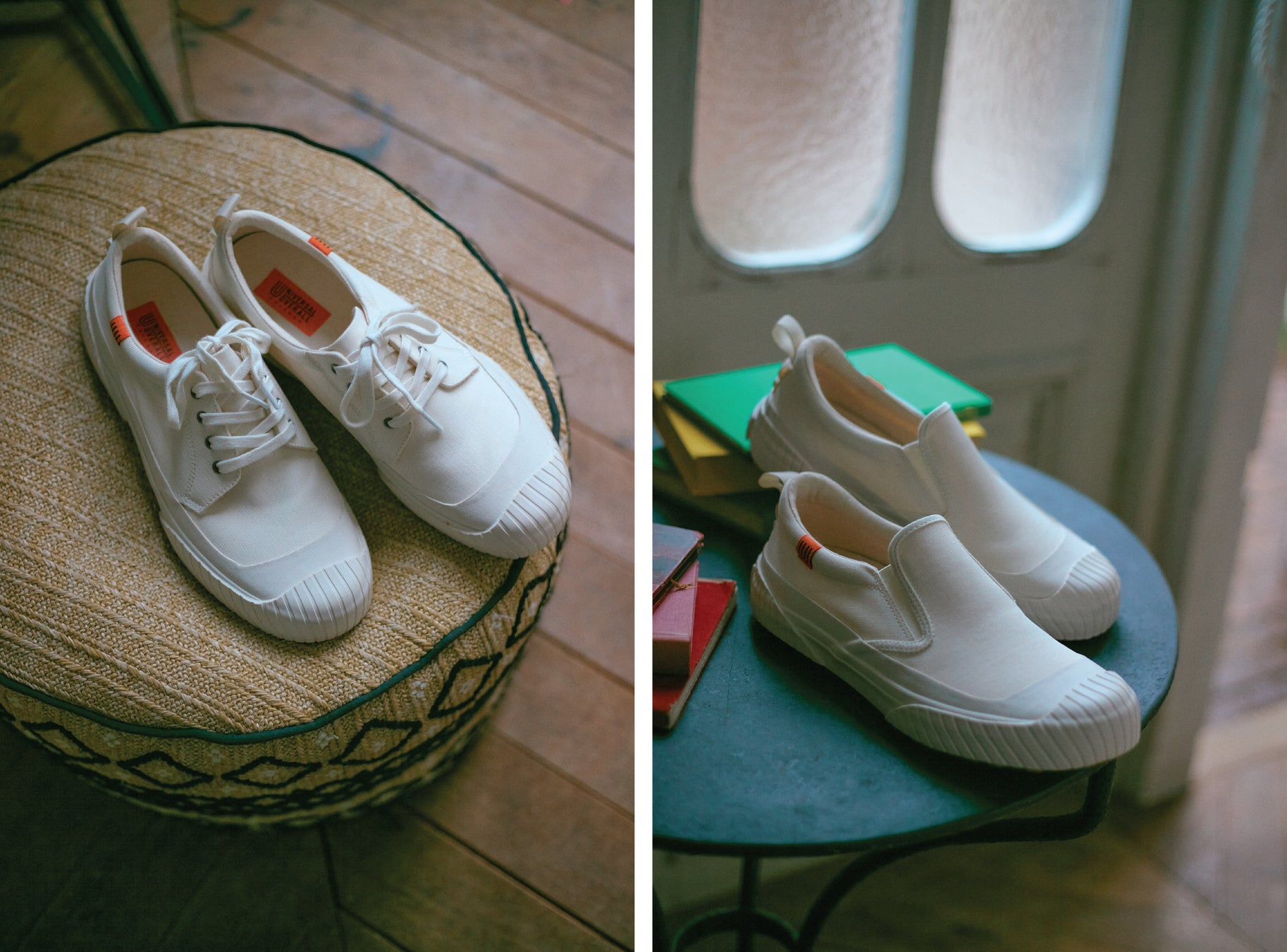 (ユニバーサル オーバーオール)」のフットウェアラインに、新たなオフホワイトのスニーカーを