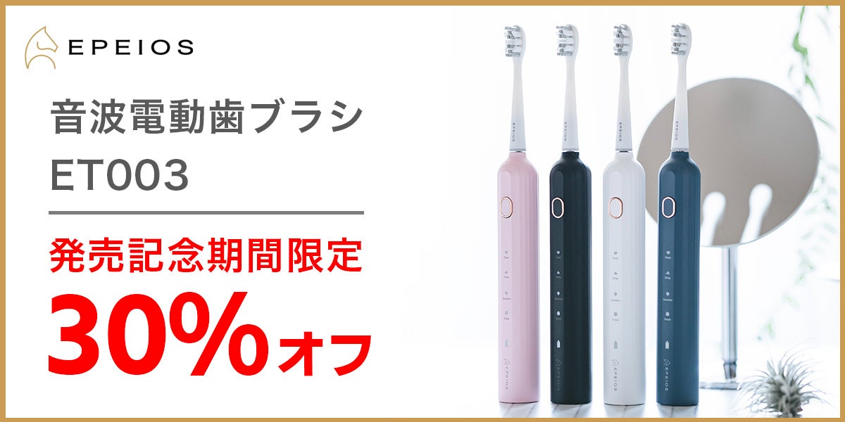 株式会社EPEIOS JAPAN(所在地:東京都中央区、代表者:駒崎竹彦)は、日本のユーザーの生活品質向上を最新テクノロジーが搭載されたプロダクトでサポートすることを目的に設立されたブランド"EPEIOS/エペイオス"より、毎分32,000回の高速振動と歯を美しくキープする4つのモードを搭載し、一度の充電で最長180日使用出来るバッテリー搭載で日々のオーラルケアをサポートする音波電動歯ブラシ"ET003"を2月8日(火)より発売。公式ECストア、Amazon、楽天市場での取り扱いから開始し、以降順次全国へと展開いたします。