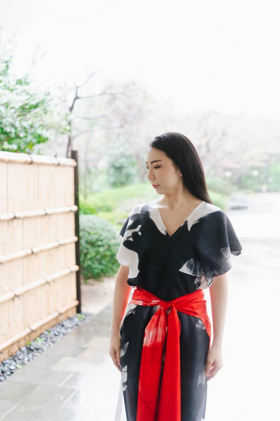 水墨画に金箔やネイルアート樹脂をコラージュし色彩豊かに描く女流現代アーティスト。幼少より書を学び、青山学院大学理工学部卒業後、書道家、武田双雲に師事し師範取得。後に水墨画家、小林東雲に師事し師範取得。その他、仮名書家 渡辺貴彦に師事。
