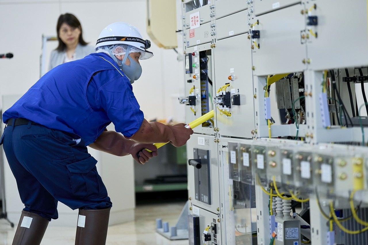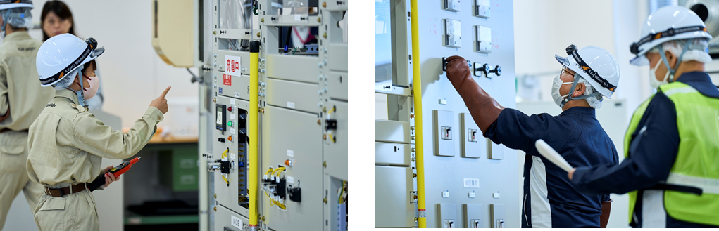 ②受変電設備の電気を停止し、停電の原因を調査・特定し、解消。復電操作を実施