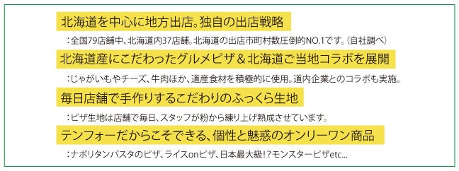 事業内容:宅配ピザチェーン「テンフォー」・宅配肉丼チェーン「第104 代肉横綱」・