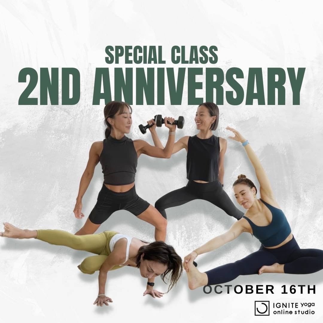 このたび、オンラインスタジオ2周年を記念して、10月16日(日)にオンラインイベント特別ライブ配信レッスンを3クラス開催いたします。また、10月1日(土)~10月31日(月)まで、IGNITE YOGA BINGOと、2週間トライアルフリーキャンペーンも実施中です。