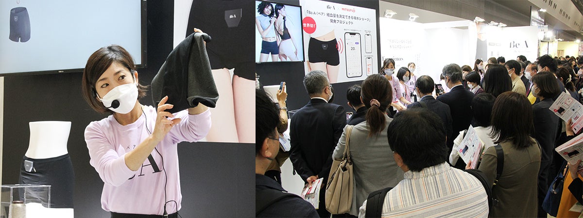 展示ブースでは、経血量を測定できる吸水ショーツをデモンストレーションで紹介。